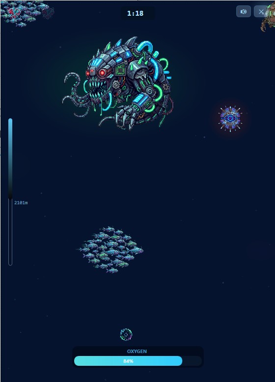 ABYSMAL is a survival descent game set in a cyberpunk ocean. Guide your diving bell through three increasingly hostile zones — from the trash-choked shallows to the pitch-black deep sea — while managing your oxygen, dodging deadly obstacles, and somehow staying alive long enough to reach the ocean floor.